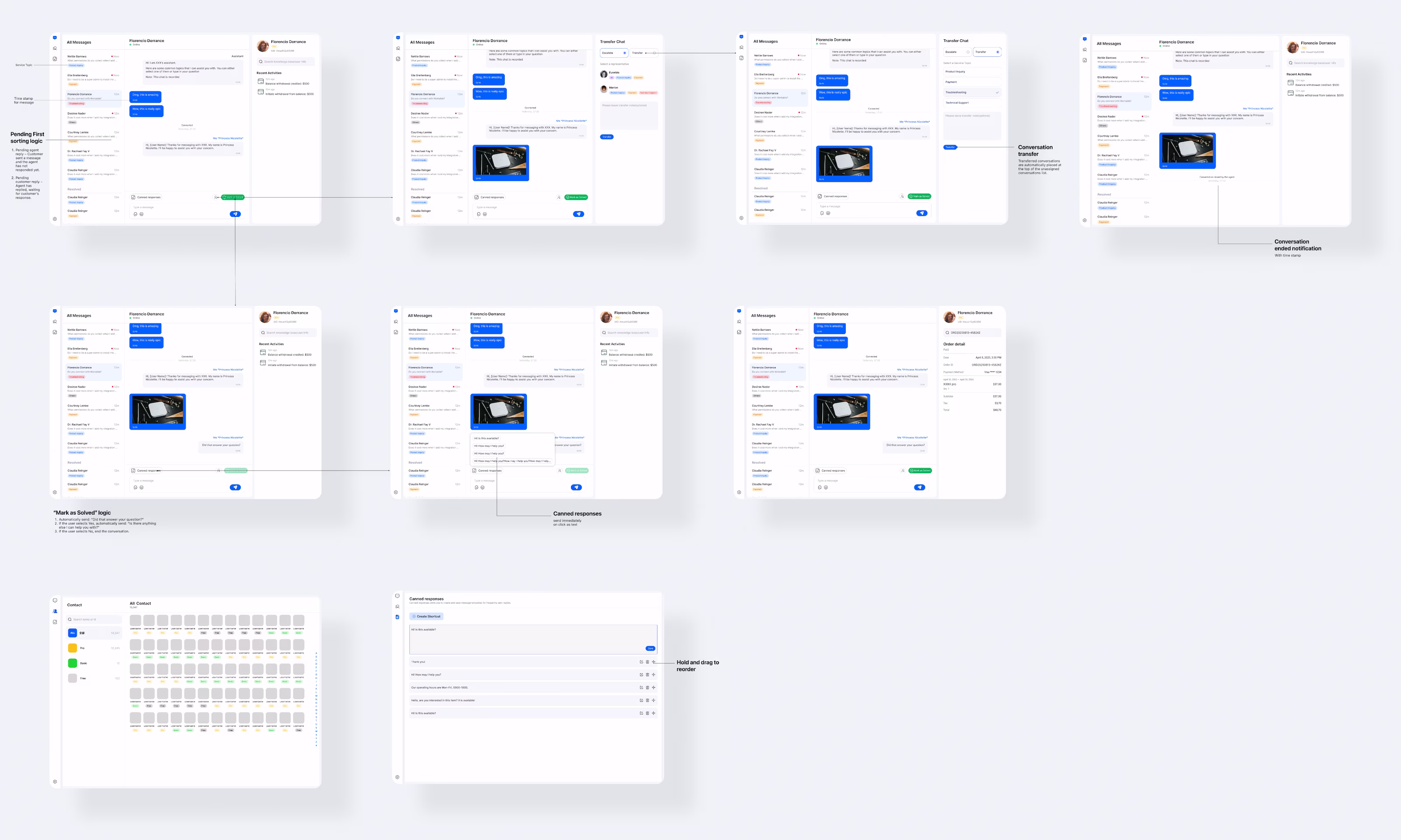 The Customer Support interface was designed for speed, clarity, and control in a multi-tasking environment. Agents need to manage multiple live sessions, maintain context, and respond quickly— without losing track of priorities.
